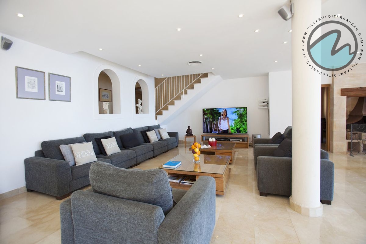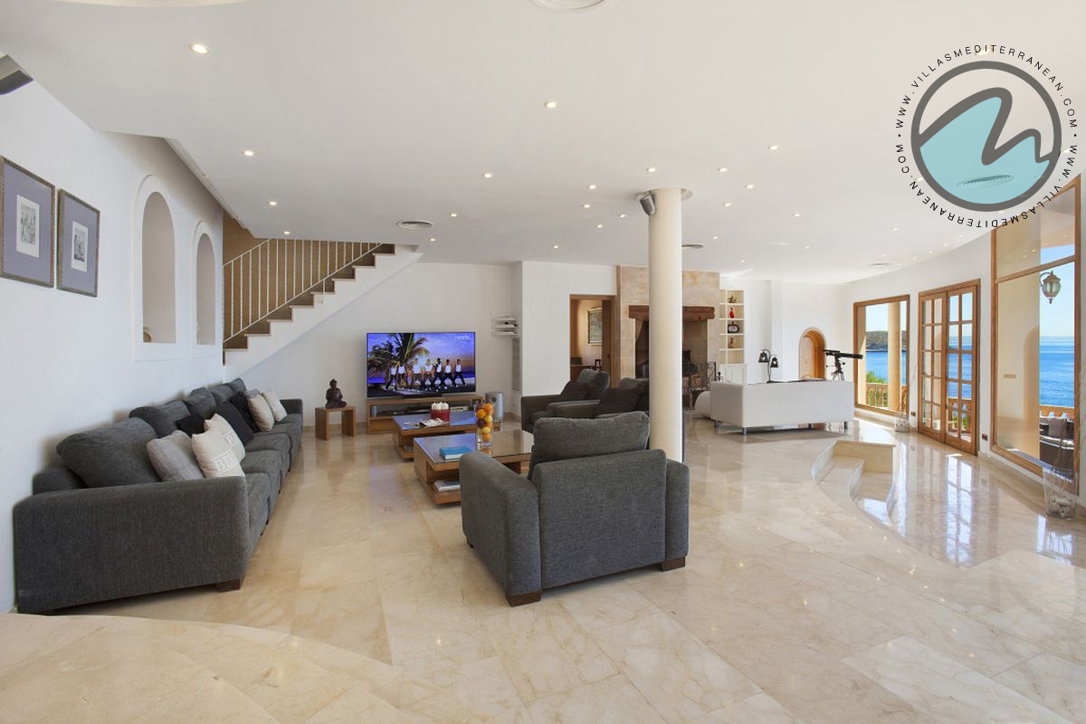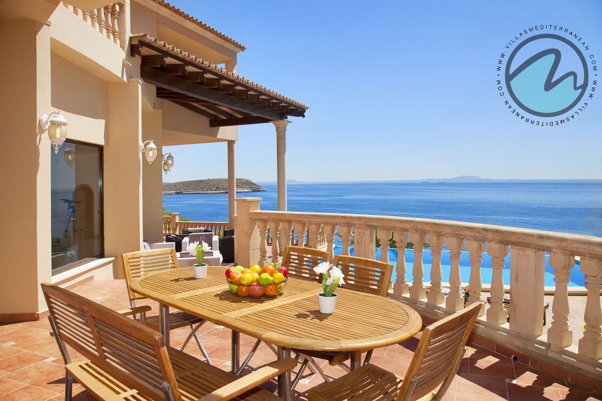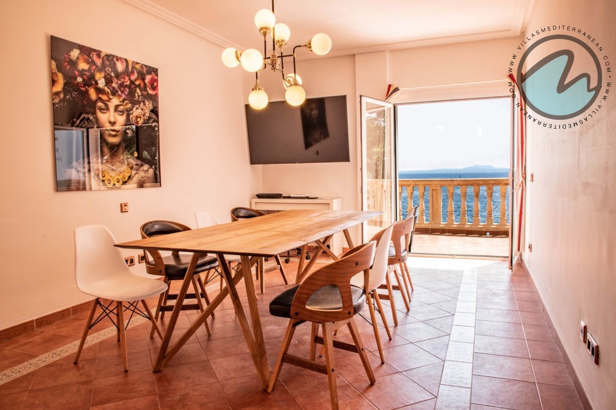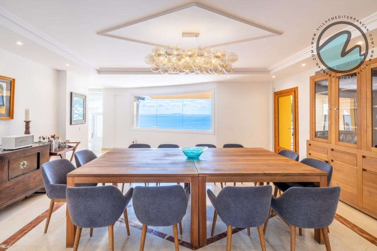 Summary: Villa Mediterranean Island is a spectacular sea‑front villa in Cala Vinyes, Majorca, designed for large families and groups. With sweeping uninterrupted sea views, an infinity pool, private heated Jacuzzi, multiple terraces and generous indoor living spaces, this Mediterranean retreat blends luxury, comfort and family‑friendly features just 300 metres from the Blue‑Flag Cala Vinyes beach.