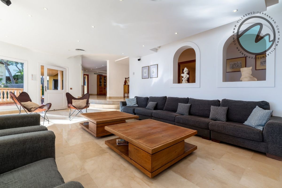 Nearby, families will appreciate the convenience and variety: the Blue Flag Cala Vinyes beach is only 300 metres away (with lifeguard service in season, playground and beach bar), easy access to local supermarkets within a short walk, coastal walking and boat trips from the nearby mooring, and family attractions a short drive away — including a waterpark, Katmandu Park, a go‑kart track and Marineland. Golfers will find numerous top courses within a short drive. For daily needs there are pharmacies, medical centres and fitness clubs close by. Palma and the stylish marinas of Puerto Portals and Port Adriano are under 20 minutes by car.